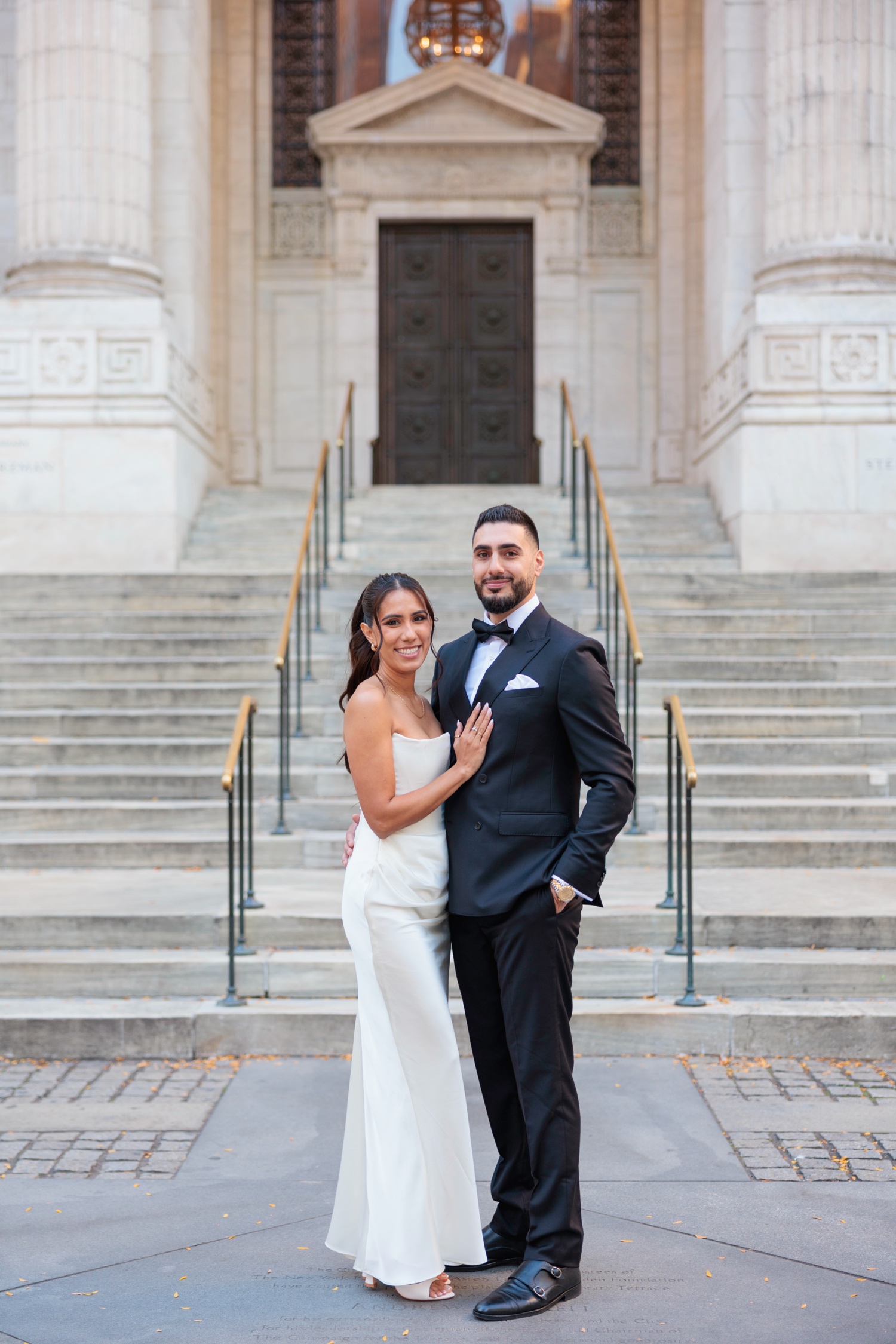 I’m thrilled to share a stunning New York City wedding photos that I had the privilege of capturing. John and Aaliyah waned to feel different than what you usually find in NYC: a timeless, candid and editorial feel that reflected their personalities and love story. From the elegance of New York Public Library wedding to the relaxed charm of Brooklyn Bridge Park, this wedding photo gallery perfectly blends editorial wedding photography and documentary wedding photography in NYC.