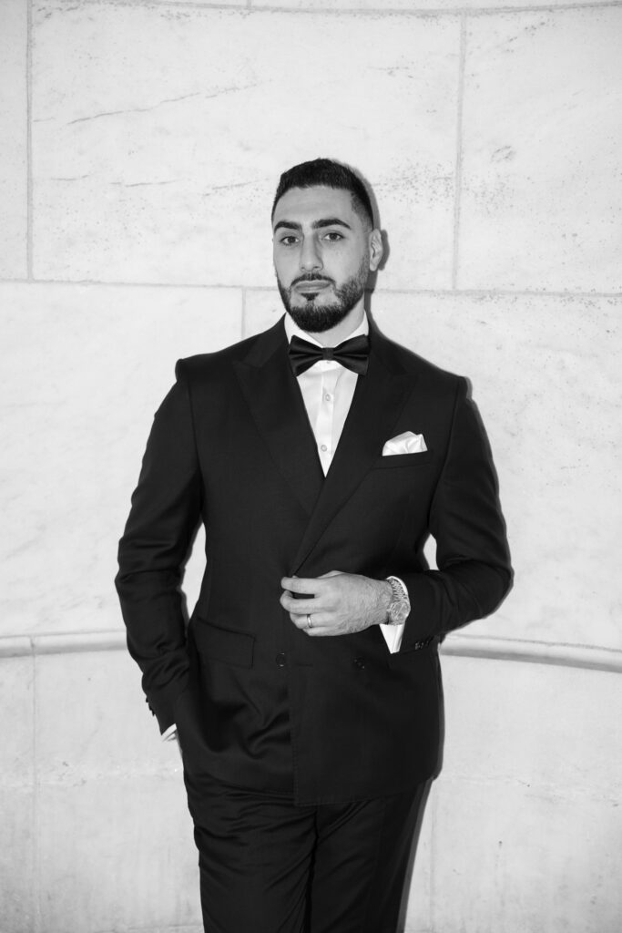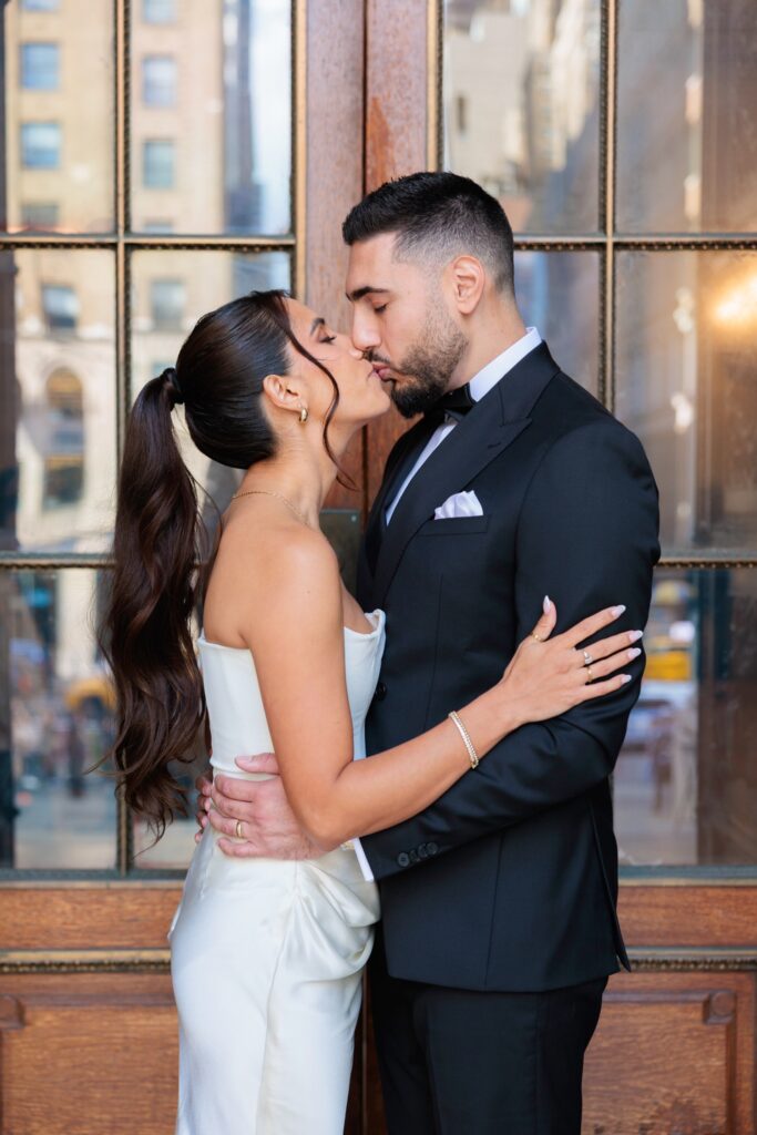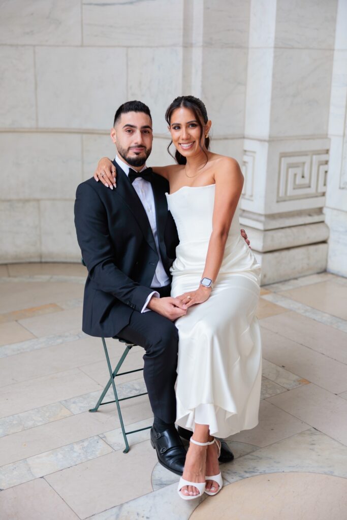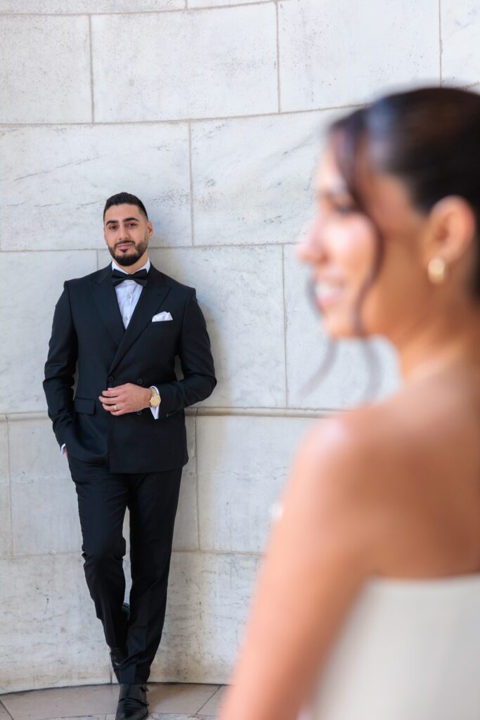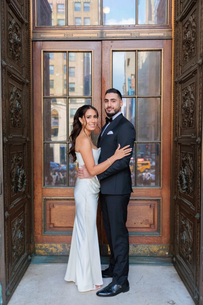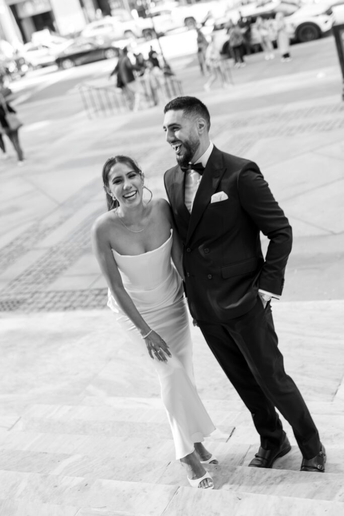 The first part of the session took place at New York Public Library, which is the perfect backdrop for editorial wedding photography in NYC. The library’s historic architecture and grand staircases allow for the perfect direct flash wedding photography look, to create timeless wedding photos. For couples looking for editorial photography in NY, New York Public Library is the perfect location.
